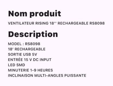 VENTILATEUR RISING 18 » RECHARGEABLE RS8098