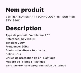 VENTILATEUR SMART TECHNOLOGY 18 » SUR PIED STV1840C