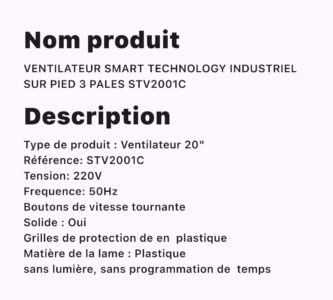 VENTILATEUR SMART TECHNOLOGY INDUSTRIEL SUR PIED 3 PALES STV2001C